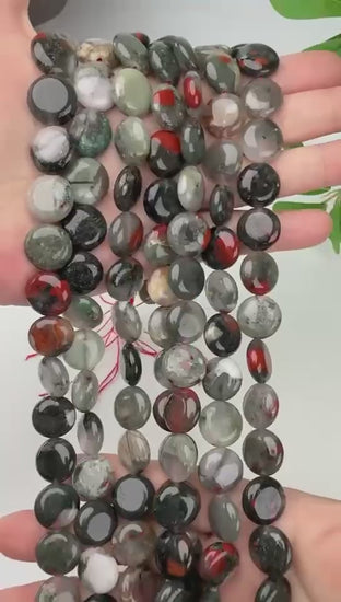 Jewelry Making with 15mm Smooth Coin Natural African Bloodstone Gemstone Beads.