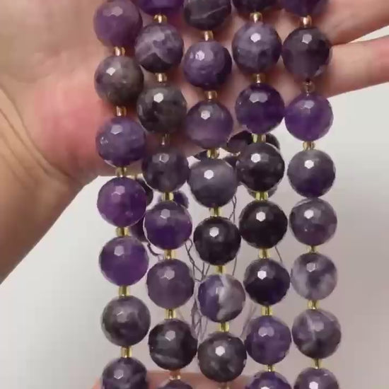 Jewelry Making with 16mm Faceted Round Natural Amethyst Gemstone Beads.