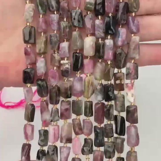 Jewelry Making with Faceted Tube Shaped Multi-Color Tourmaline Gemstone Beads.